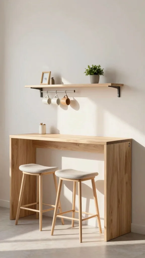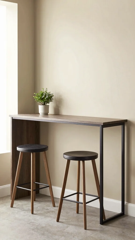 Choose a compact setup that complements your layout: a narrow counter along a wall, a flip-down table, or a slim breakfast bar built from a portion of the counter.