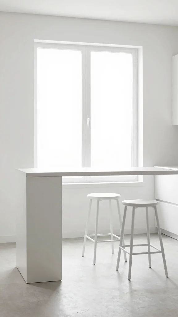 Fun fact: A minimalist high table with light finishes can make a small kitchen feel up to 30% larger. Pair with slim stools to keep sightlines clean and your small kitchen breakfast bar ideas instantly feel airy and elegant.