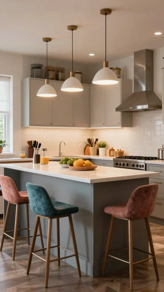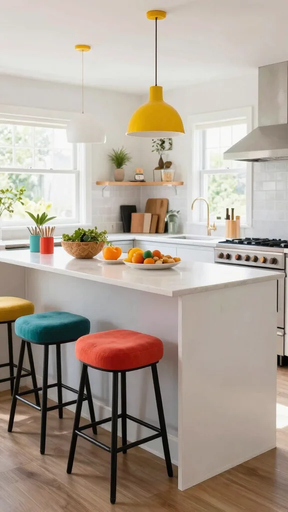 This design not only creates a fun dining atmosphere but also adds character to your kitchen, making it a lively space for gatherings.