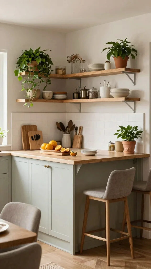 This approach not only creates additional storage but also adds visual interest to your kitchen, making it a delightful space for breakfast.