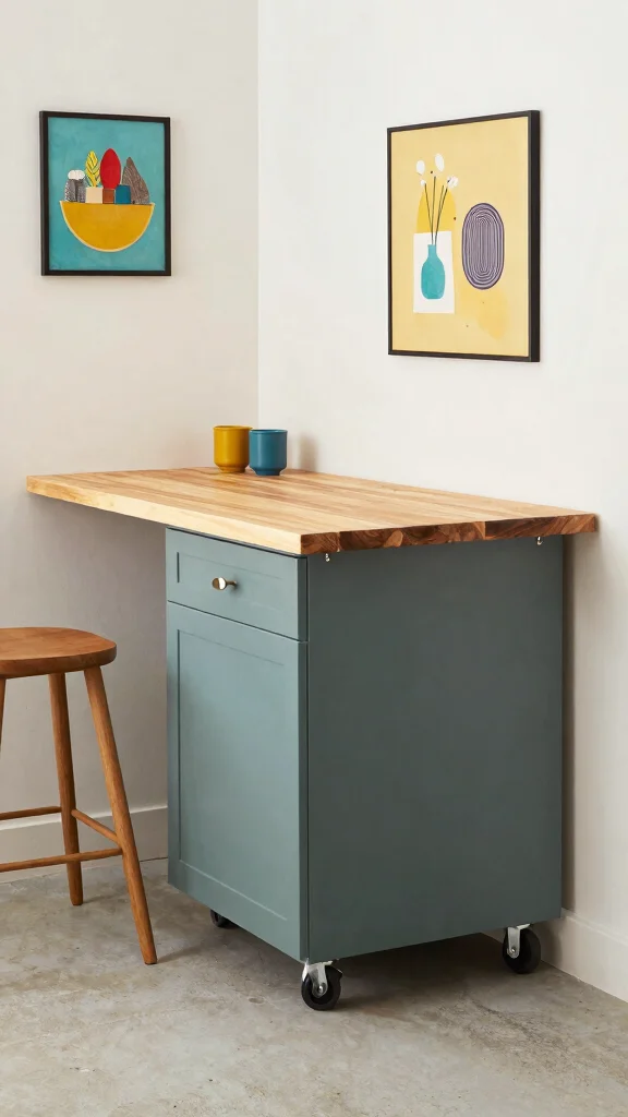 This approach fits well with kitchen island alternatives, compact kitchen solutions, and small home decor ideas.