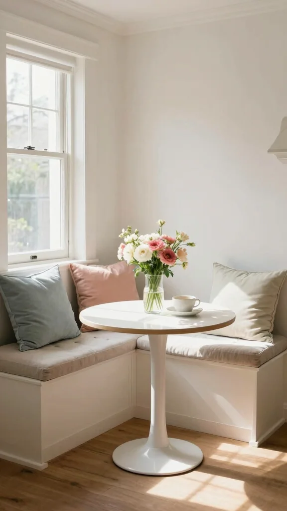 Creating a breakfast nook with built-in seating is both practical and charming, making the most of your kitchen’s layout. This design not only maximizes space but also fosters a cozy atmosphere for intimate morning meals. Imagine a corner nook with cushioned benches that welcome you in. Decorate with soft pillows and a small vase of flowers to enhance its inviting charm.