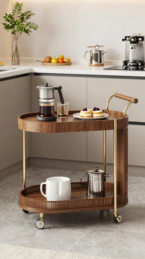 To make the most of this design, keep the cart stocked with items you frequently use. Personalize it with decorative elements like a small plant or a colorful fruit bowl to enhance its visual appeal. This trend marries functionality with style, making it perfect for modern kitchens.