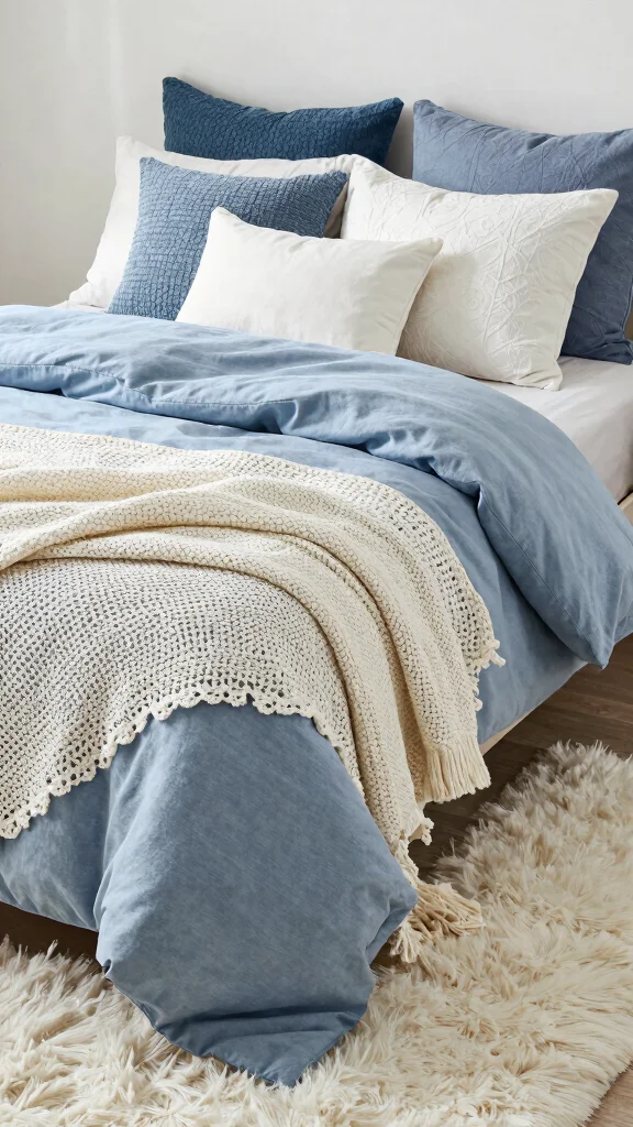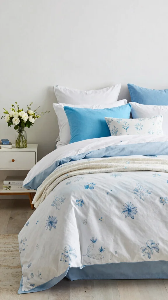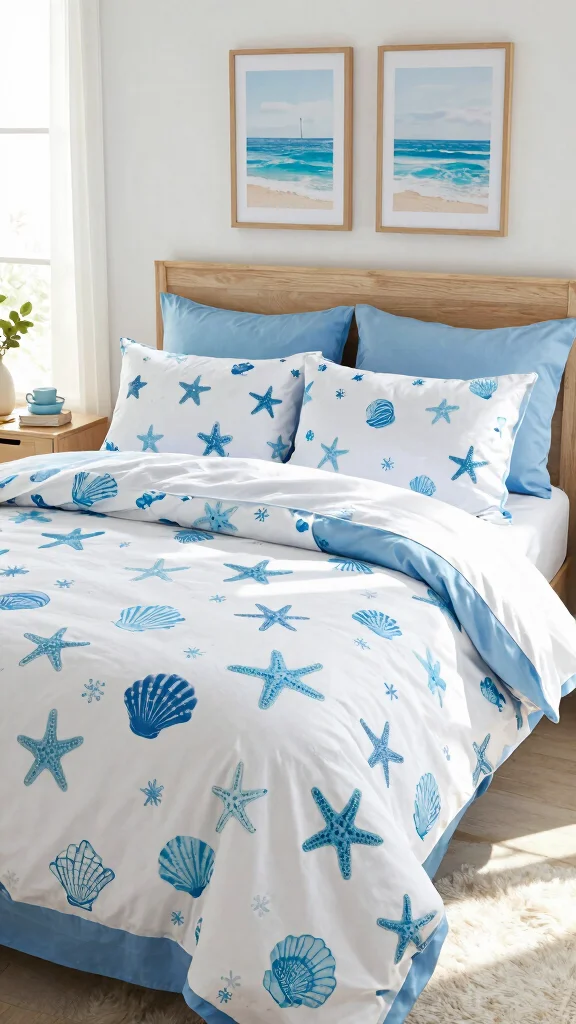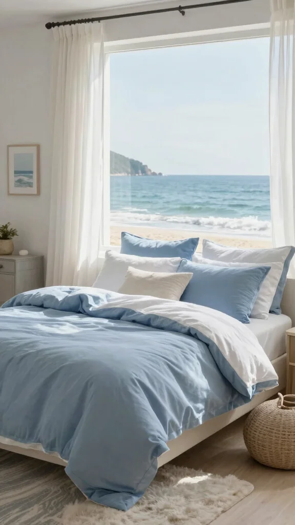 Pro Tip: To truly embrace the coastal vibe, consider incorporating accent colors like sandy beige or soft aqua into your bedding accessories. This will balance the blue and white, creating a more dynamic look without overwhelming your space.