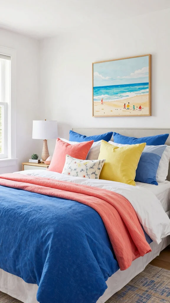 Combine beachy bedding with coordinating accessories like decorative pillows or throws that echo the same motifs. Maintaining a cohesive color scheme ensures a pulled-together look throughout the room, enhancing the beach vibe.