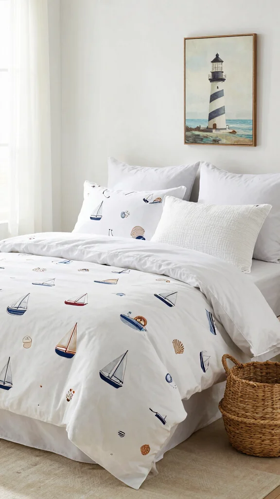 Coastal nautical prints bring a playful yet sophisticated touch to your bedroom decor. Look for bedding adorned with charming motifs like sailboats, lighthouses, or marine life to enliven your space while maintaining a cohesive coastal theme. Pair nautical bedding with solid-colored sheets in white or cream to let the prints stand out, creating an elegant balance.