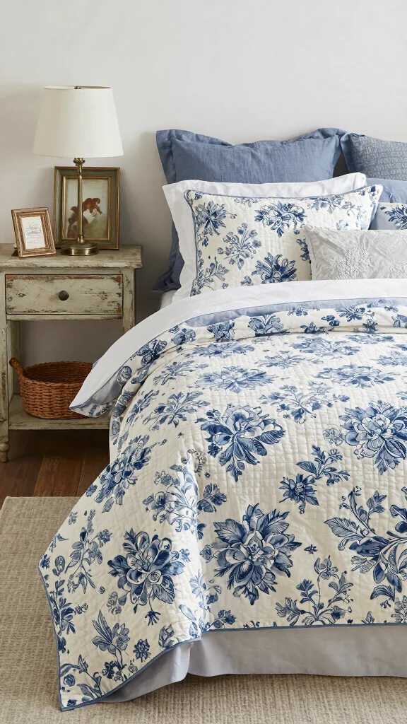 Embrace nostalgia with vintage-inspired blue and white bedding that infuses your space with warmth and charm. Seek out classic floral patterns, paisley designs, or quaint prints that reflect traditional coastal aesthetics. Vintage bedding can add a cozy touch while seamlessly blending with coastal elements.
