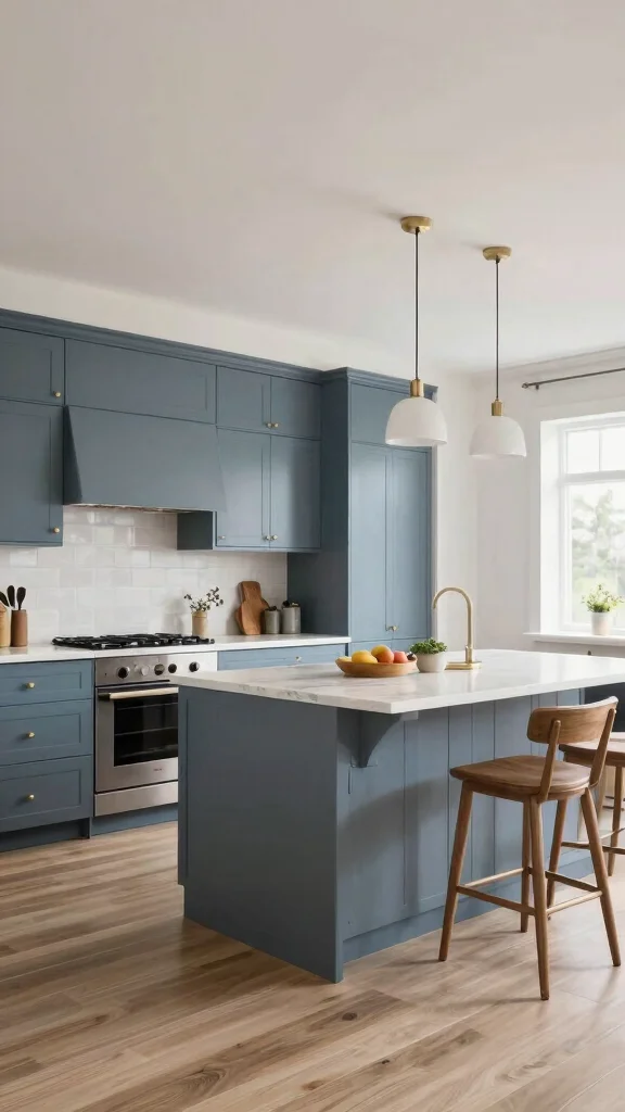 If you love a seamless look, monochromatic designs can be breathtaking. Choose varying shades of blue gray for your cabinets, countertops, and decor, creating dimension without overwhelming the space. In this setup, consider using light fixtures and hardware in the same color family to maintain a cohesive appearance.