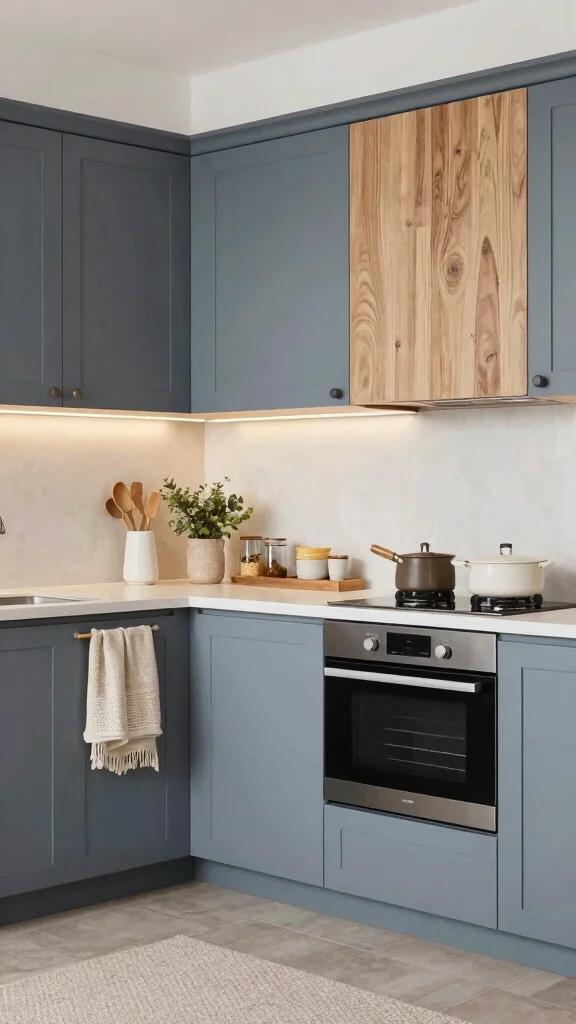 Common mistakes include choosing countertops that clash with the blue gray, using too-dark flooring, or neglecting lighting. With blue gray kitchen cabinets, avoid going too monochromatic; add contrast with light walls, natural textures, and soft lighting. Donโt overlook hardware scale or cabinet spacing. Finally, donโt forget to test finishes in natural light for blue gray color scheme balance, and plan for future updates if you want to switch accents as trends evolve.