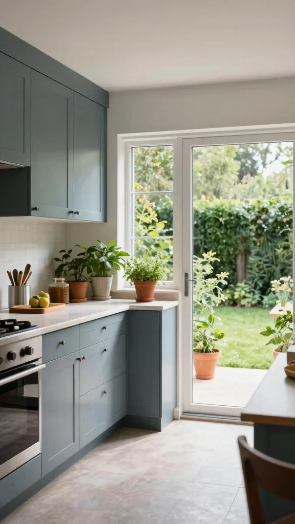 Enhancing the connection between your indoor kitchen and outdoor area can elevate your kitchen experience significantly. Blue gray cabinets can create a seamless transition to an outdoor patio or garden by integrating large glass doors or windows. This not only allows for an abundance of natural light but also provides stunning views of nature, enriching your cooking environment.