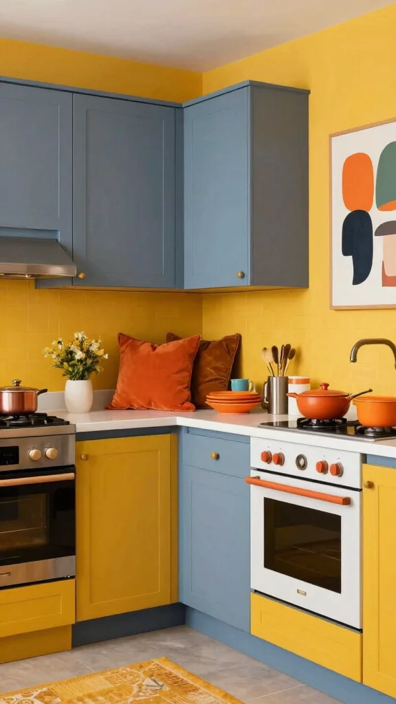 If youโre ready to make a bold statement, contrasting your blue gray kitchen cabinets with vibrant colors is an exciting option. Imagine deep mustard yellows or rich burnt oranges as accent colors, creating a lively environment against the soft blue gray backdrop. These striking accents in decor or appliances can invigorate the space, adding energy and personality.