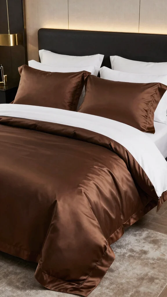 For a sophisticated finish, consider incorporating satin elements into your brown and white bedding. A satin duvet cover in a rich brown hue can instantly elevate your bedroom’s aesthetic, providing a luxurious feel. Pair it with crisp white sheets for a stunning contrast that feels both inviting and stylish. Using satin pillowcases for your accent pillows can further enhance the elegant look while ensuring a plush experience.