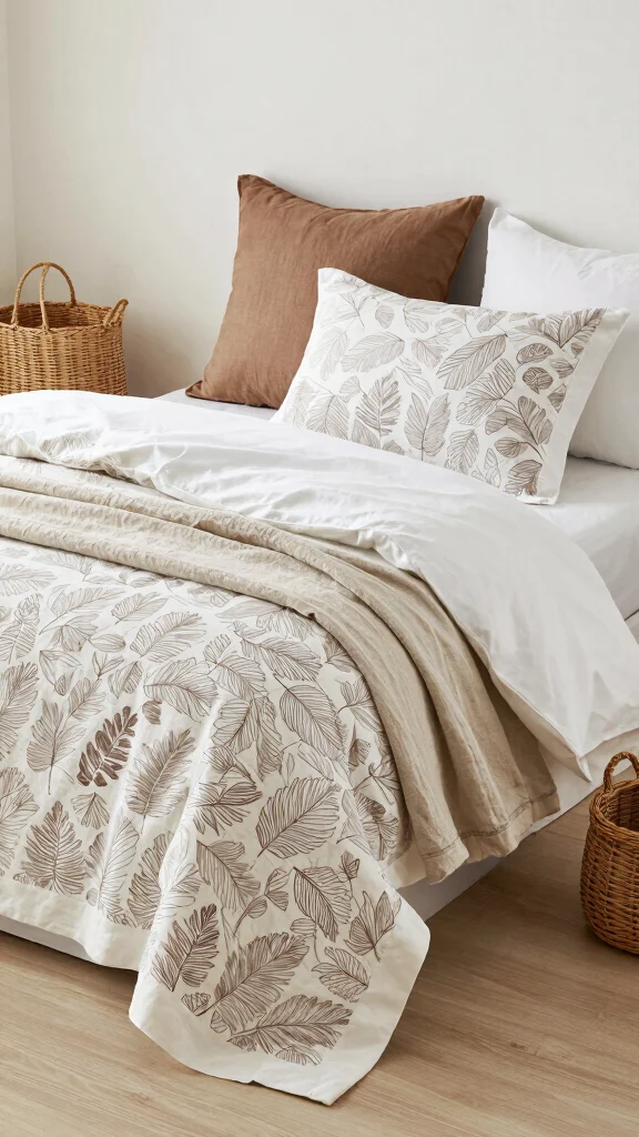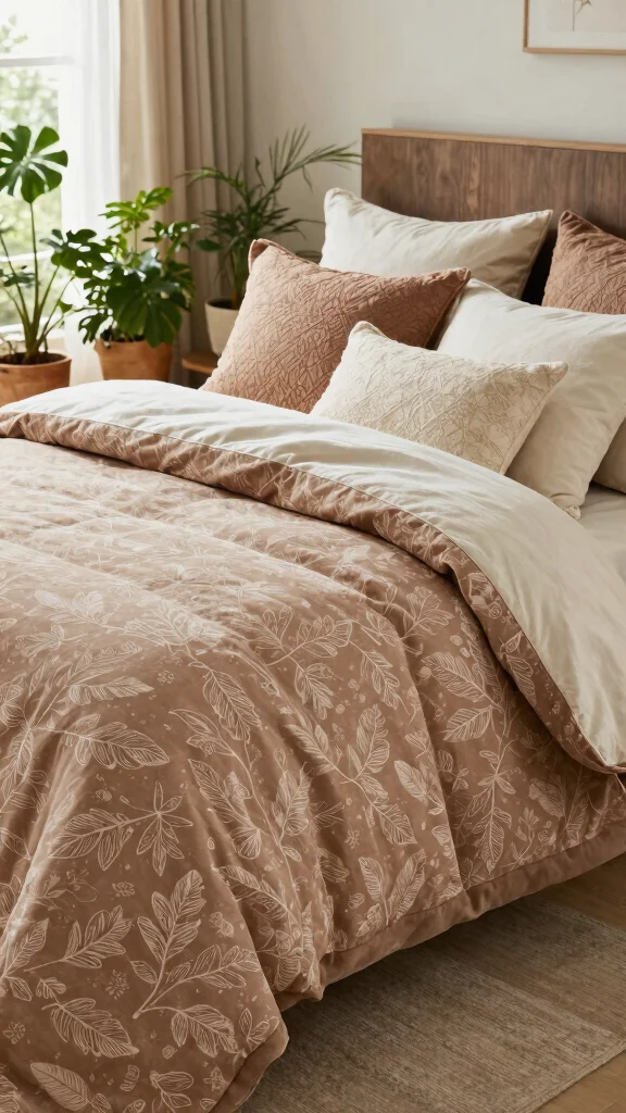 Linen is also a practical choice, as it is breathable and suitable for all seasons. To amplify the organic feel, consider incorporating natural wood furniture and adding greenery with indoor plants for a refreshing touch.