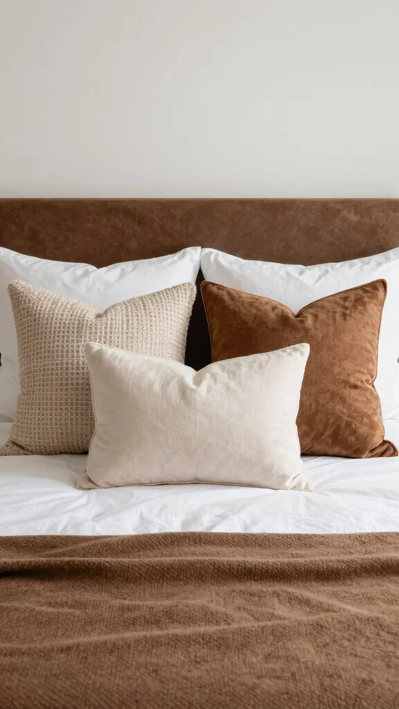 Choose pillows in complementary earth tones for cohesion.