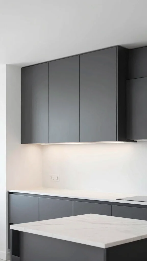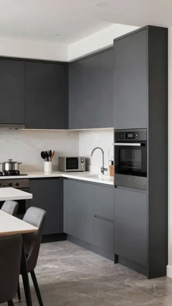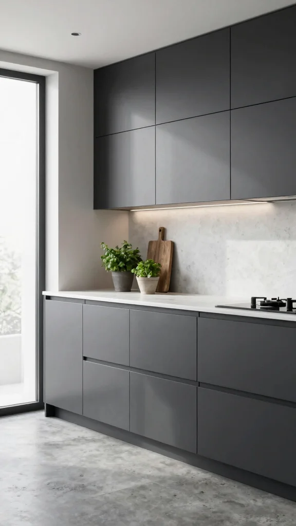 Flat-panel doors exude a sleek sophistication that’s perfect for dark grey kitchen cabinets. This design principle emphasizes clean lines and simplicity, allowing the rich grey tones to become the focal point. Pairing these cabinets with a crisp white countertop and stainless steel hardware creates a harmonious look that feels modern and inviting.