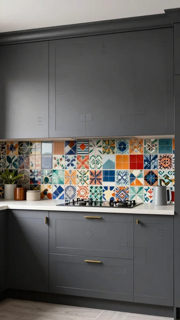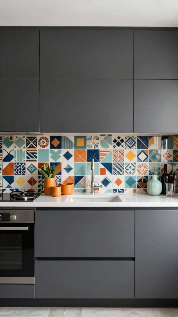 To infuse geometric elements, use bold patterned tiles as a backsplash that contrasts beautifully with dark grey. Choose hardware with geometric shapes for a modern twist, and balance the patterns with simpler decor for cohesion.