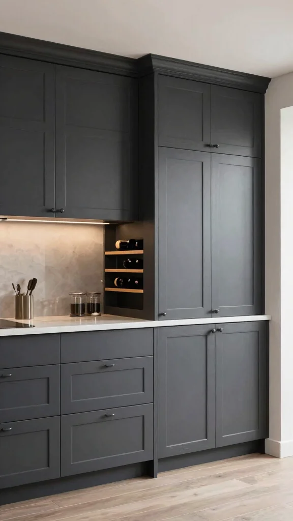 Maximizing storage while maintaining elegance is easy with dark grey cabinets. Smart storage solutions keep your kitchen organized and stylish, ensuring everything has its place. Whether using pull-out shelves or clever cabinetry designs, functionality can align beautifully with aesthetics.