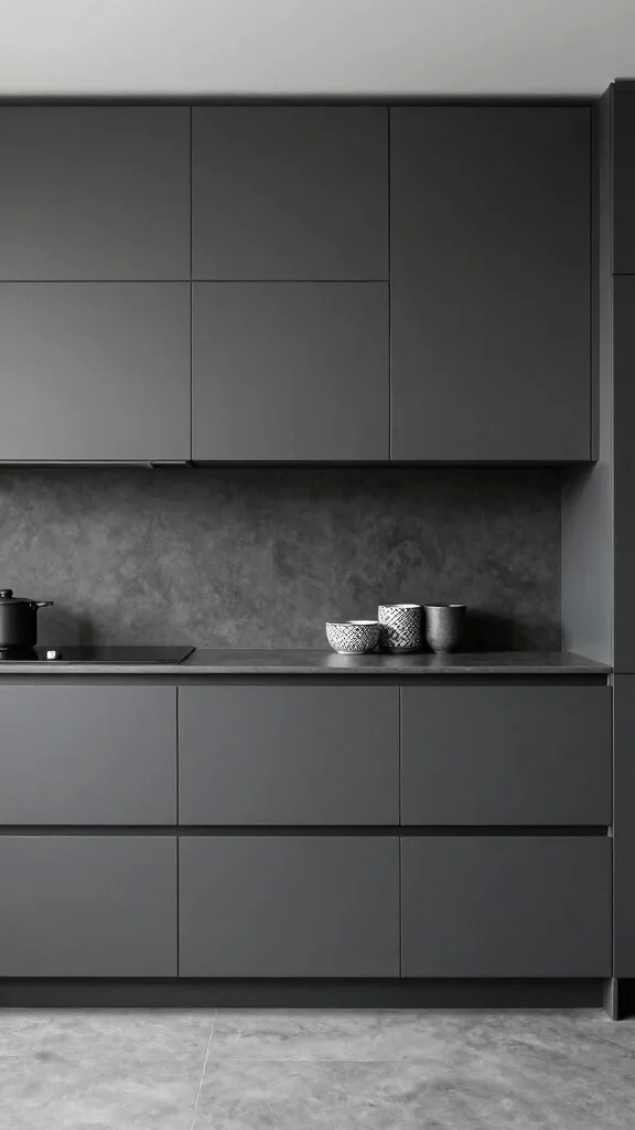 A monochrome palette can create a strikingly sophisticated aesthetic when using dark grey cabinets. This approach ensures seamless flow in design while maintaining depth and interest through varying shades of grey. By combining different textures and shades, you can create a visually appealing environment.