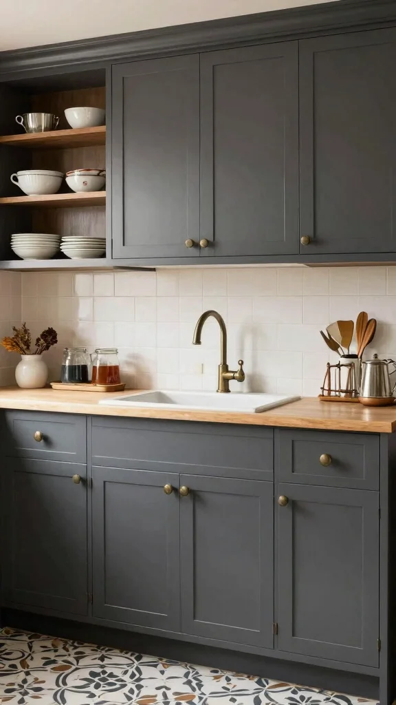 Incorporating vintage elements into a kitchen with dark grey cabinets creates a charming blend of old and new. This design evokes nostalgia while maintaining a modern aesthetic, making your kitchen feel warm and inviting. Vintage touches can be integrated seamlessly with dark grey for a delightful contrast.