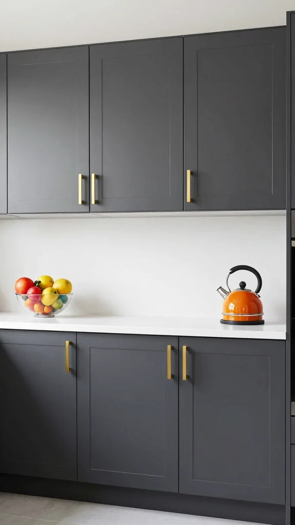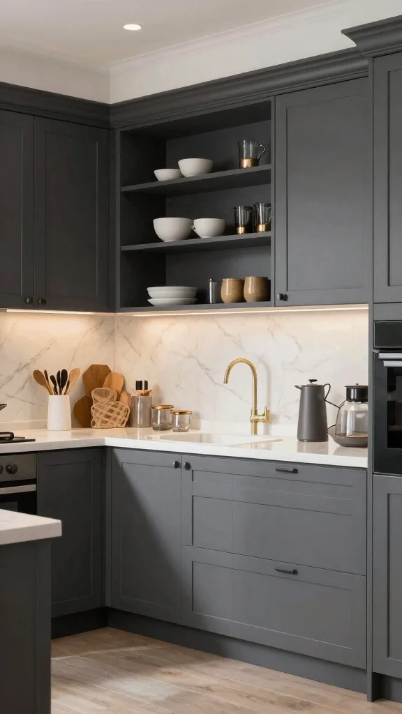 Combining dark grey cabinets with white accents creates a stunning two-toned kitchen that feels open and stylish. This approach beautifully balances the weight of dark grey with lighter elements, making the space feel cohesive and inviting. Consider pairing dark grey lower cabinets with white upper ones for a striking visual effect.