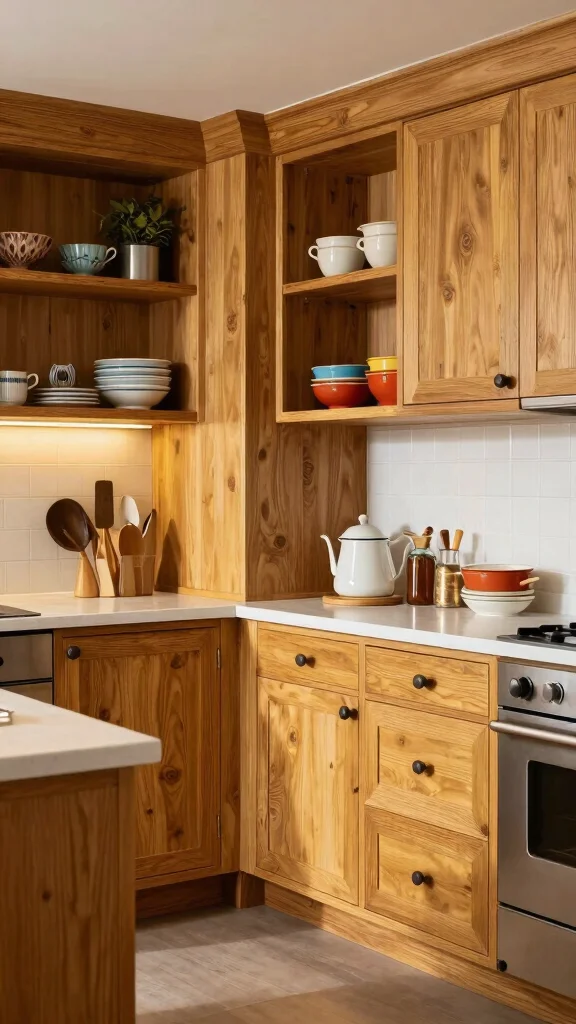 Customized cabinets can provide your kitchen with a unique touch, perfectly tailored to your lifestyle and design preferences. Opt for bespoke designs that incorporate golden oak with personalized hardware, specific dimensions, and custom layouts. This investment not only optimizes functionality but also enhances the overall beauty of your space.