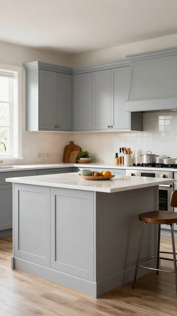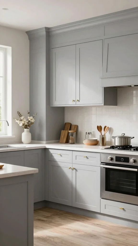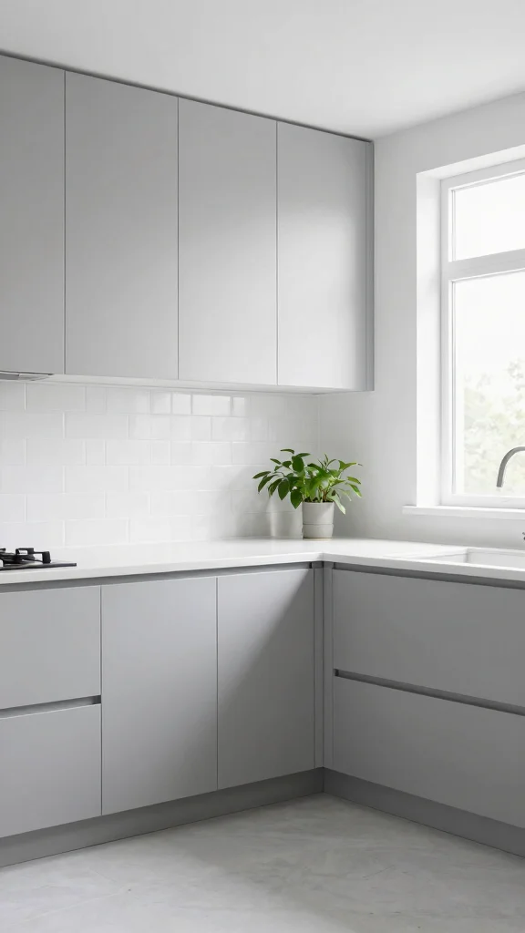 For a fresh, minimalist vibe, start with a soft, neutral shade of light grey and keep the rest of the palette simple. Pair light grey kitchen cabinets with white or quartz countertops, crisp white backsplashes, and clean lines to achieve a modern kitchen design. Choose handleless or integrated hardware to maintain a seamless look, and add a small pop in decor rather than large accents to stay within minimalist kitchen ideas. If space allows, a touch of warm wood or a satin brass faucet can add subtle contrast without breaking the calm tone.