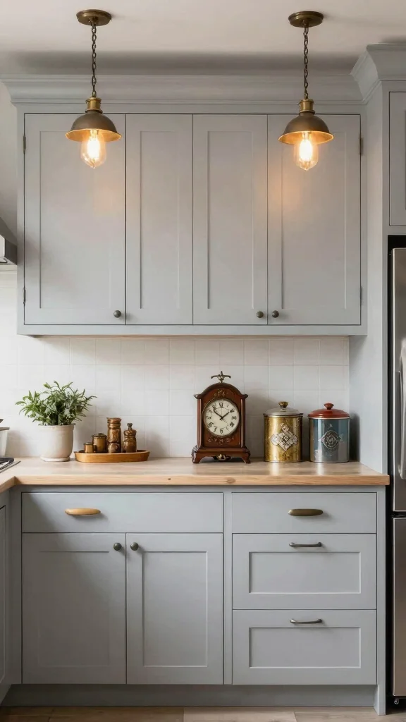 Integrating vintage-inspired elements with light grey cabinets can impart a charming touch to your kitchen. Consider using antique hardware or retro light fixtures that contrast elegantly with the modern cabinetry. This blend of old and new creates a distinct aesthetic that feels warm and personal. Vintage decor items, such as an old clock or canisters, can tie the look together while adding character.