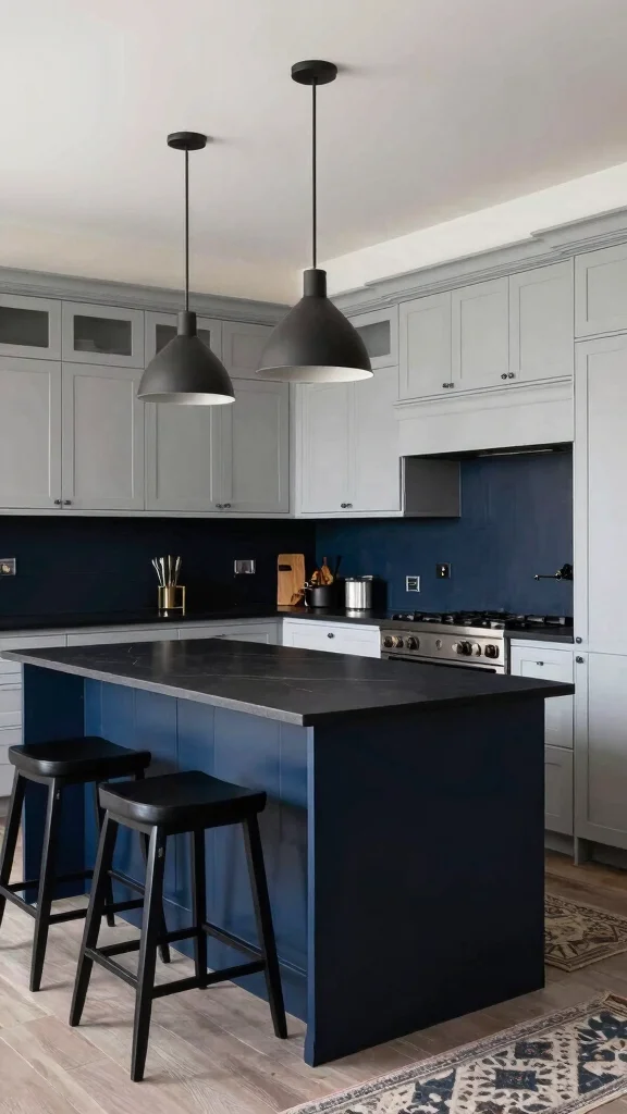 For a successful implementation, integrate black or dark wood accessories to create a cohesive look. A pendant light with a dark finish can draw attention upward, enhancing the overall design. This trend not only elevates the kitchen’s style but also allows for personal expression through color.