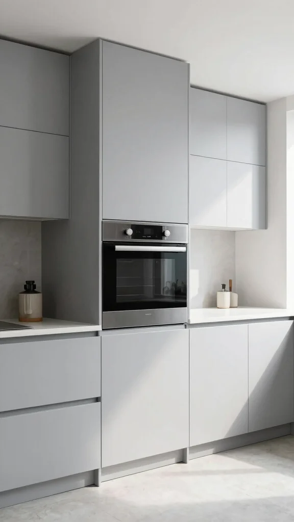 Flat-panel light grey cabinets capture the spirit of minimalist design, offering a clean and sophisticated aesthetic. Their smooth surfaces reflect light, creating a spacious atmosphere that feels both modern and airy. Pair these cabinets with crisp white countertops and polished stainless steel fixtures for a stylish touch. By keeping decorative elements simple, like a few plants or minimalist art, you can enhance the elegance of the cabinetry without cluttering the visual space.
