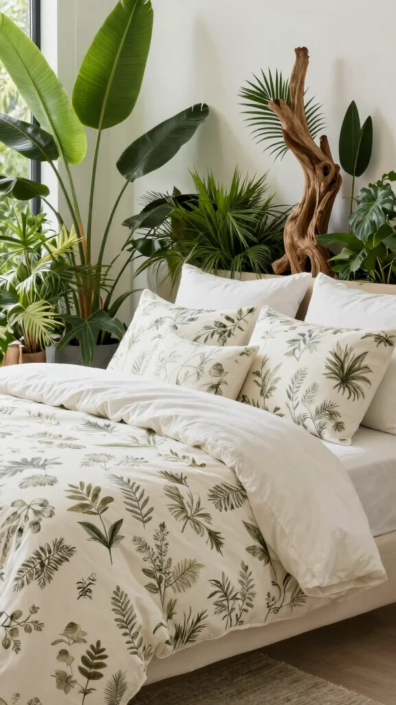 – Use small potted plants on nightstands to echo earthy tones.
