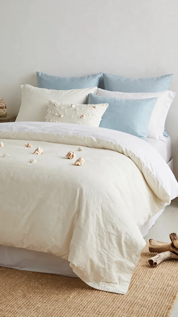 Creating a coastal oasis with off white bedding will make your bedroom feel like a serene getaway.