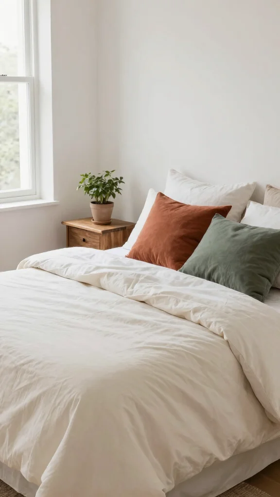 Combining off white bedding with earthy accents creates a warm and inviting atmosphere in your bedroom. Incorporating soft browns, terracottas, or muted greens harmonizes beautifully with your neutral palette, fostering a relaxing environment reminiscent of nature.