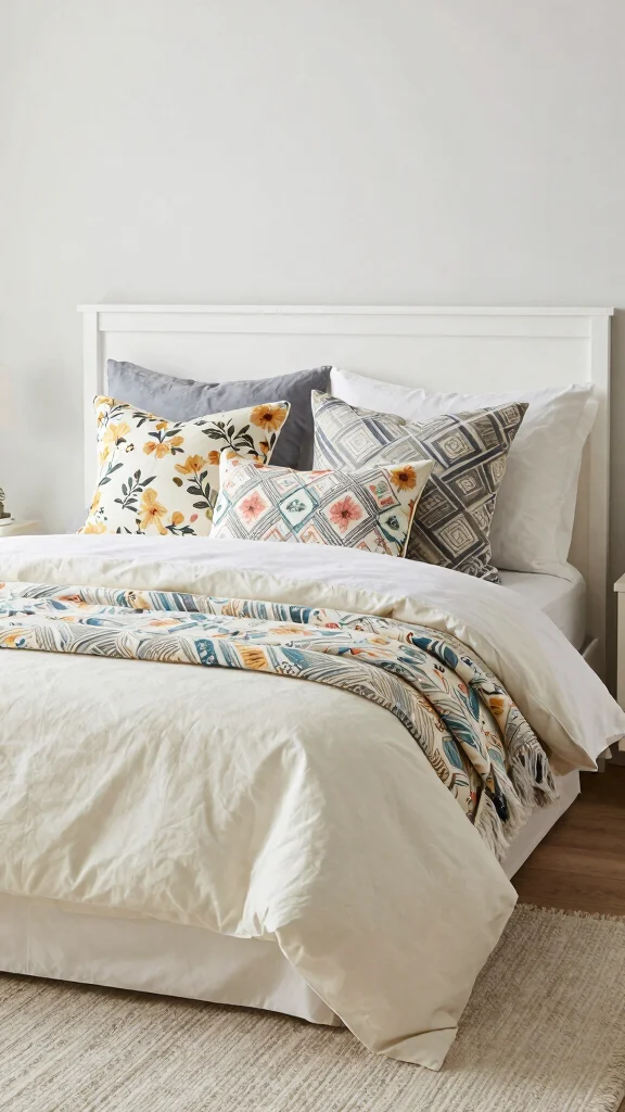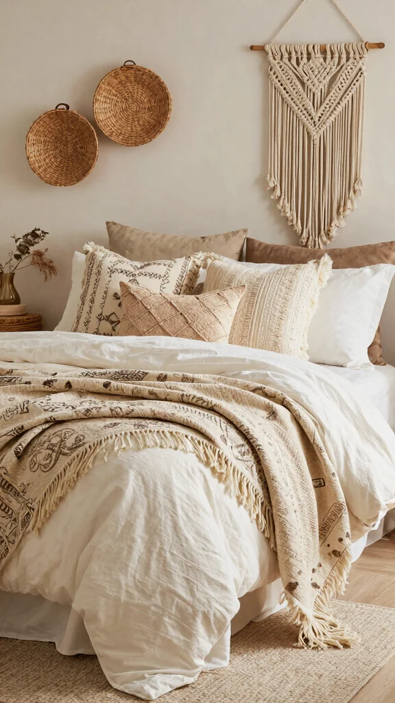 Fun fact: 75% of people report that layering off white bedding with textured quilts and fringed throws makes a bedroom feel 2x cozier. A bohemian mix of fabrics naturally warms up the space and invites laid-back vibes.