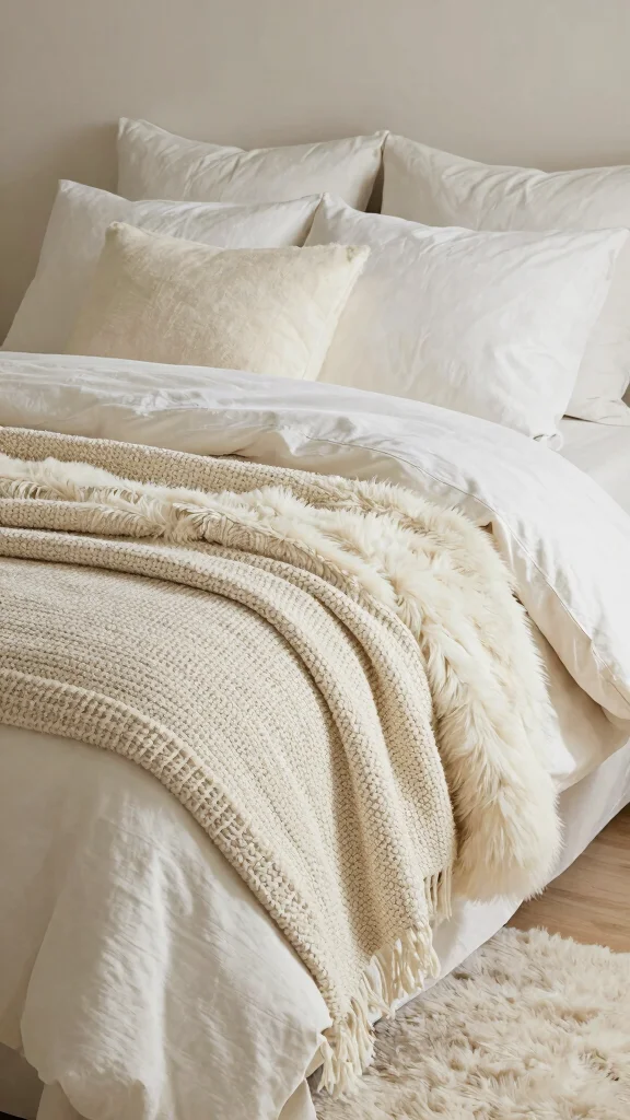 Consider draping a faux fur throw over your duvet or using a thick knit blanket for added warmth and texture. Mixing materials helps not only to keep you cozy but also enhances the visual appeal of your bedding.