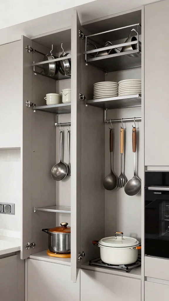 This approach not only keeps your cookware handy but also enhances your kitchen’s overall aesthetic.
