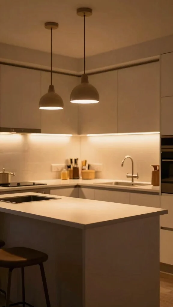 By layering different lighting types—ambient, task, and accent—you can create a welcoming space even in the tiniest kitchens.