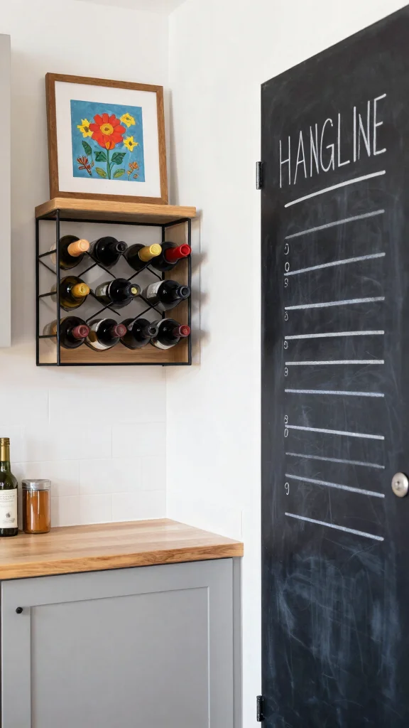 Choose pieces that complement your kitchen’s color palette while providing utility. Consider a chalkboard wall for notes or a wine rack that doubles as a sculptural element to add personality.