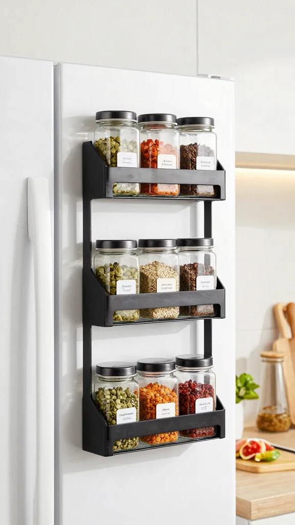 Magnetic spice racks can revolutionize how you store your spices while adding a stylish touch to your kitchen. By utilizing the sides of your refrigerator or walls, you can keep spices accessible and organized. Picture small magnetic jars neatly lined up, inviting culinary creativity.