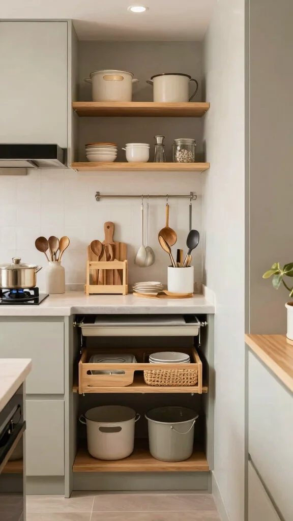 Overhead pot racks are a fantastic way to utilize vertical space while keeping your cookware accessible. These racks can introduce a rustic or industrial flair to your kitchen, all while keeping essential items organized. Picture your pots and pans elegantly hanging above your workspace, ready for use.