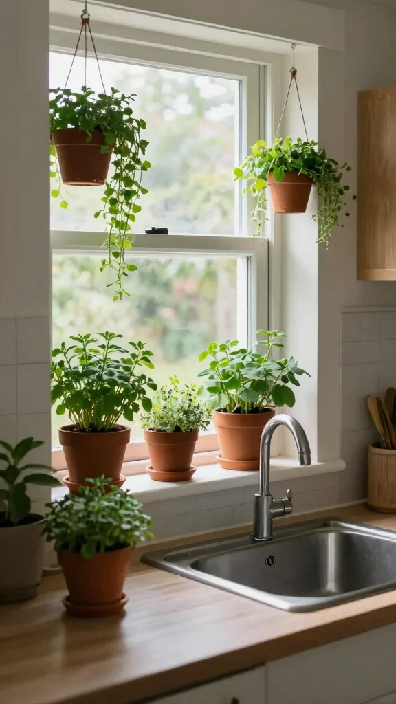 Incorporate plants to enhance your kitchen’s freshness and improve air quality, adding a lively touch.