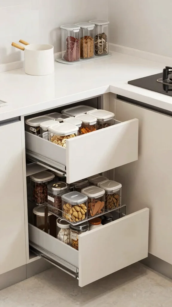 Smart Storage Solutions Simplify Life: Implementing smart storage solutions keeps your countertops clear and your kitchen organized, making it both functional and stylish.
