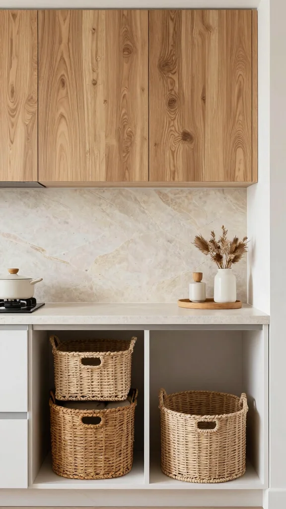 This style not only keeps your kitchen organized but also elevates the overall ambiance, allowing the beauty of the materials to stand out.