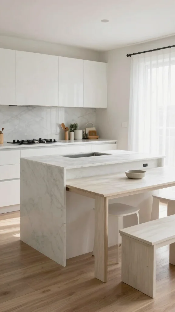 From embracing light colors to choosing multi-functional furniture, each idea is designed to help you create a minimalist kitchen that you’ll love spending time in. Let’s dive into these concepts that will transform your cooking area into a stylish gathering space.