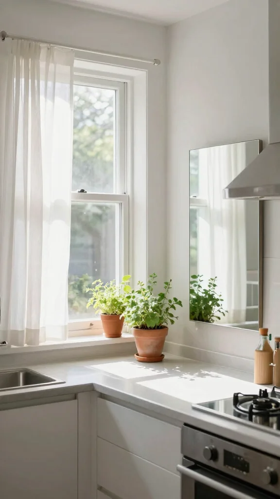 Maximize window space and use sheer curtains to flood your kitchen with natural light for a welcoming atmosphere.