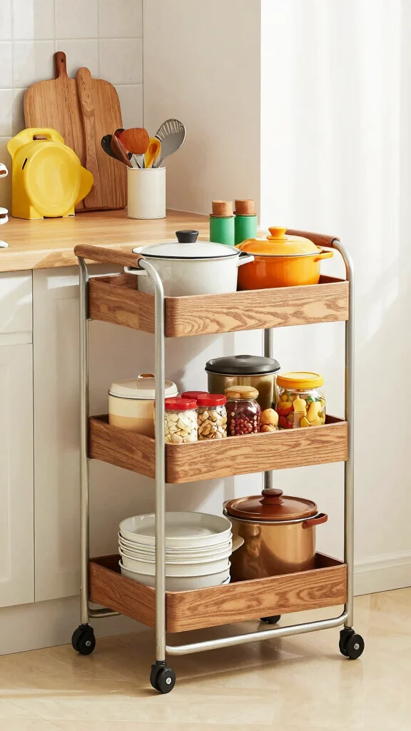 Using a rolling cart helps keep your kitchen organized while adding flexibility without permanent changes.