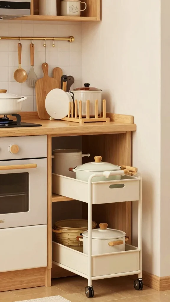A rolling cart can be a game-changer in a small kitchen, providing additional storage and counter space that can be easily moved. When not in use, it can be tucked away to maximize your floor space, making it a versatile solution.