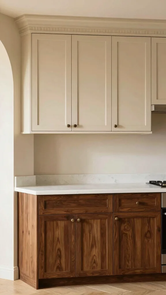 – Pair beige upper cabinets with rich espresso lower ones