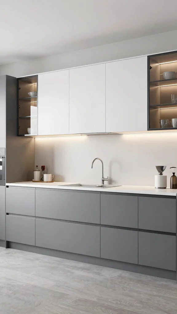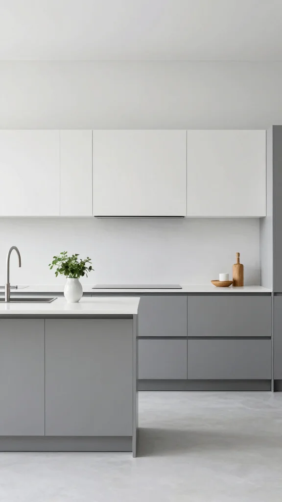 To elevate this chic aesthetic, consider mixing in metallic accents like brushed nickel or chrome for a touch of luxury. Look for budget-friendly options at home improvement stores or online marketplaces to find stylish hardware without breaking the bank. This gray and white palette is perfect for those seeking a modern yet classic kitchen that feels effortlessly polished.
