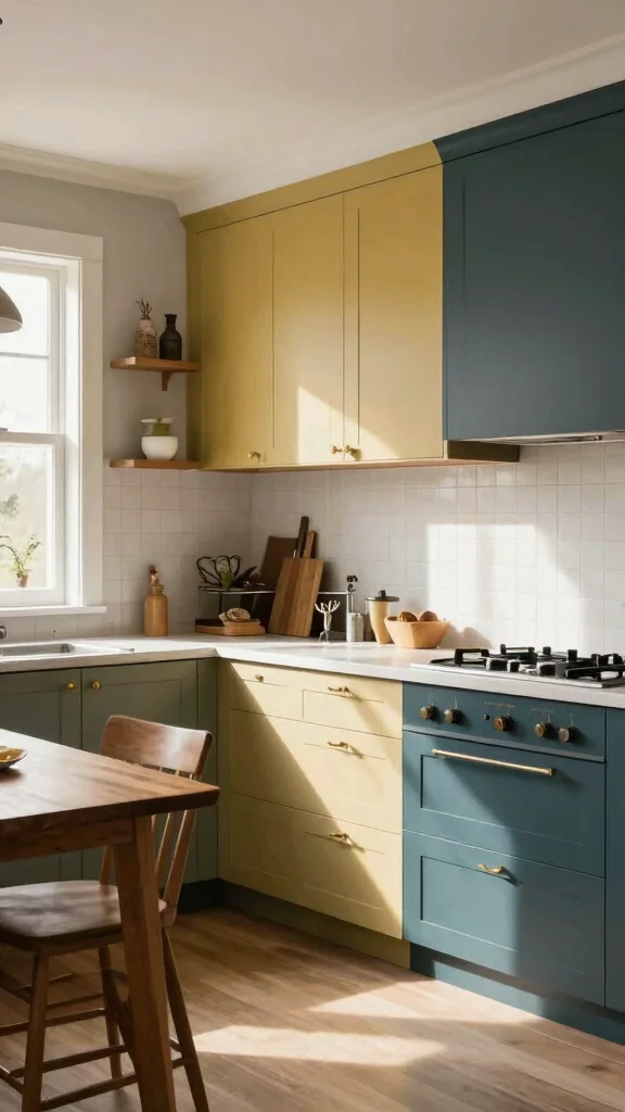 This approach creates a vibrant kitchen environment where personality and color come together beautifully.
