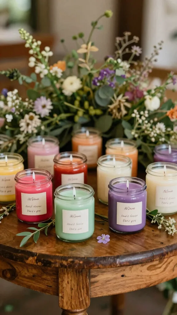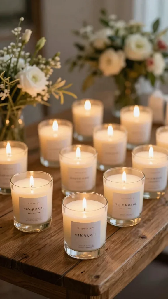 Candle size matters! Think about how you want your guests to use these candles. Smaller candles, like votives or tea lights, are perfect for place settings and offer a subtle aroma. Larger candles, such as jars, can serve as decorative pieces at home. Just remember to keep your guests’ space in mind; you want to give them something they can easily take away and use.